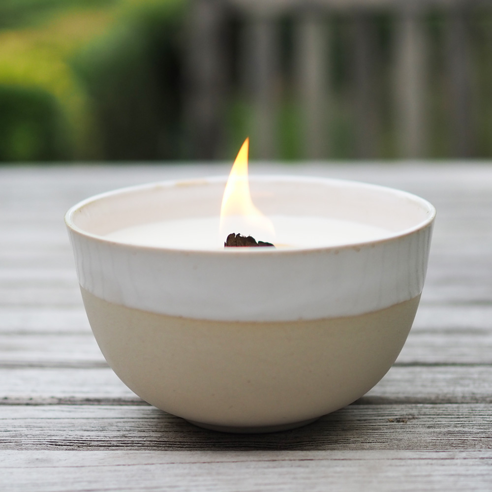 Diese Kerze aus Rapswachs mit einem breiten Holzdocht in einer glasierten Steinzeug-Schale steht für Gemütlichkeit. Das umweltfreundliche Rapswachs ist vegan und hat optimale Brenneigenschaften. Der breite Holzdocht brennt mit einer großen Flamme und versprüht ein gemütliches Knistern.