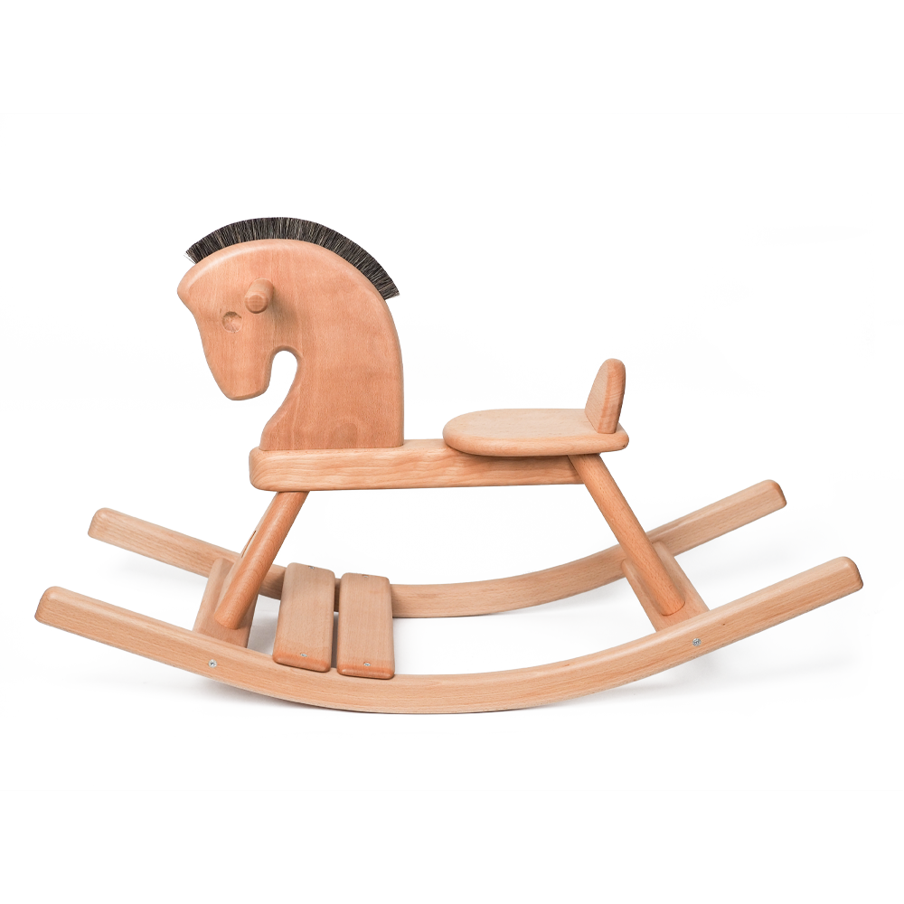 Das Schaukelpferd ist ein Klassiker mit dem auch schon die Kleinen schaukeln können. Unser Schaukelpferd wird in der Schreinerei der Lebenshilfe Stuttgart in echter Handarbeit aus gedämpfter deutscher Rotbuche gefertigt. Es ist besonders robust und kann an weitere Generationen vererbt werde. Die Holzoberfläche ist mit kau- und speichelfestem Holzöl auf Leinölbasis versiegelt und die Mähne des Schaukelpferdes besteht aus echtem Roßhaar.